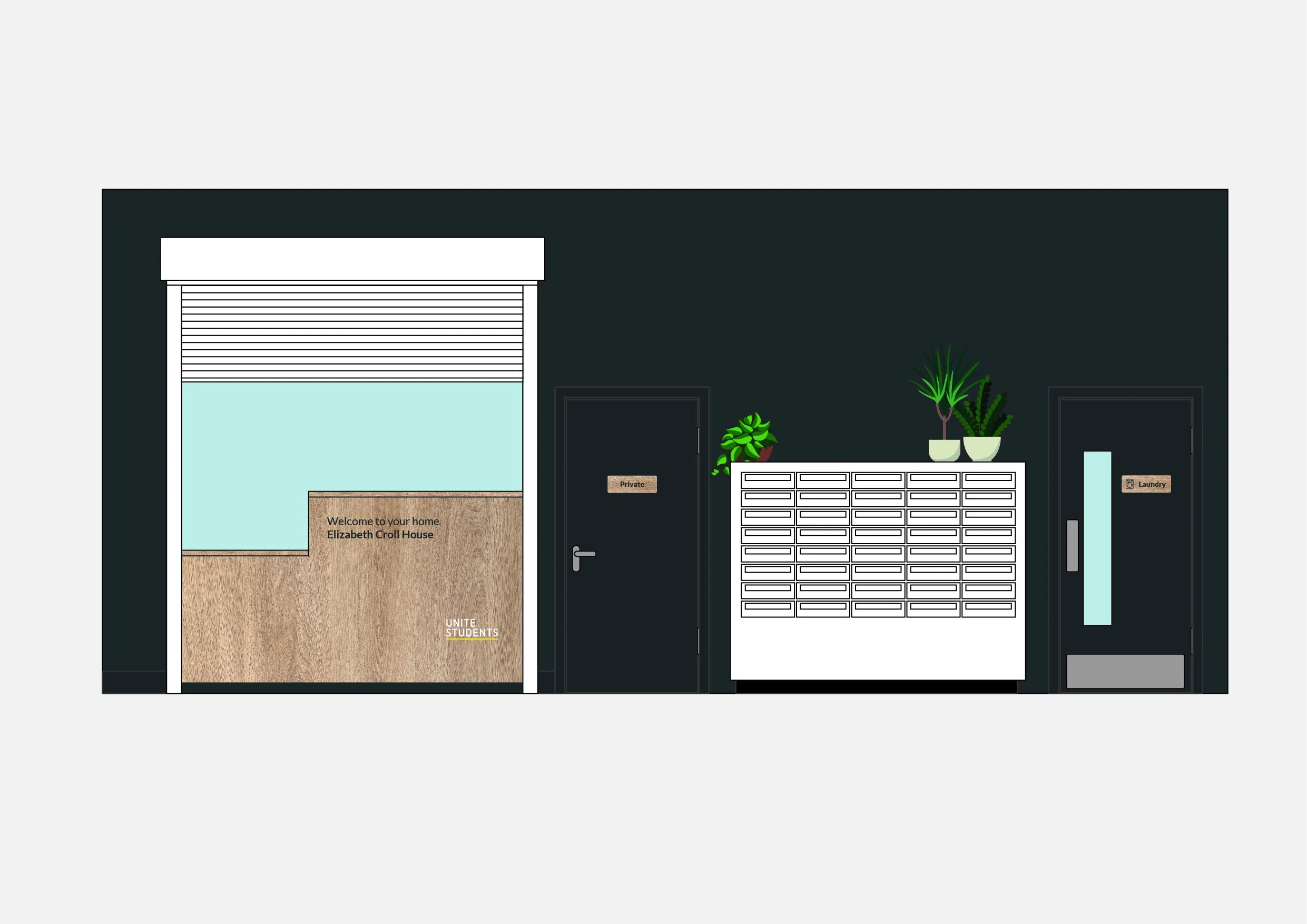 Environmental branding and interior styling for Unite Students reception lobbys.