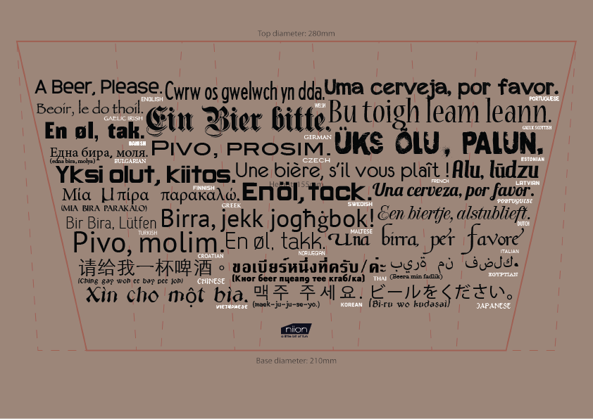 Create the typographic artwork to be upon the printed wrap for novelty beer glass product.